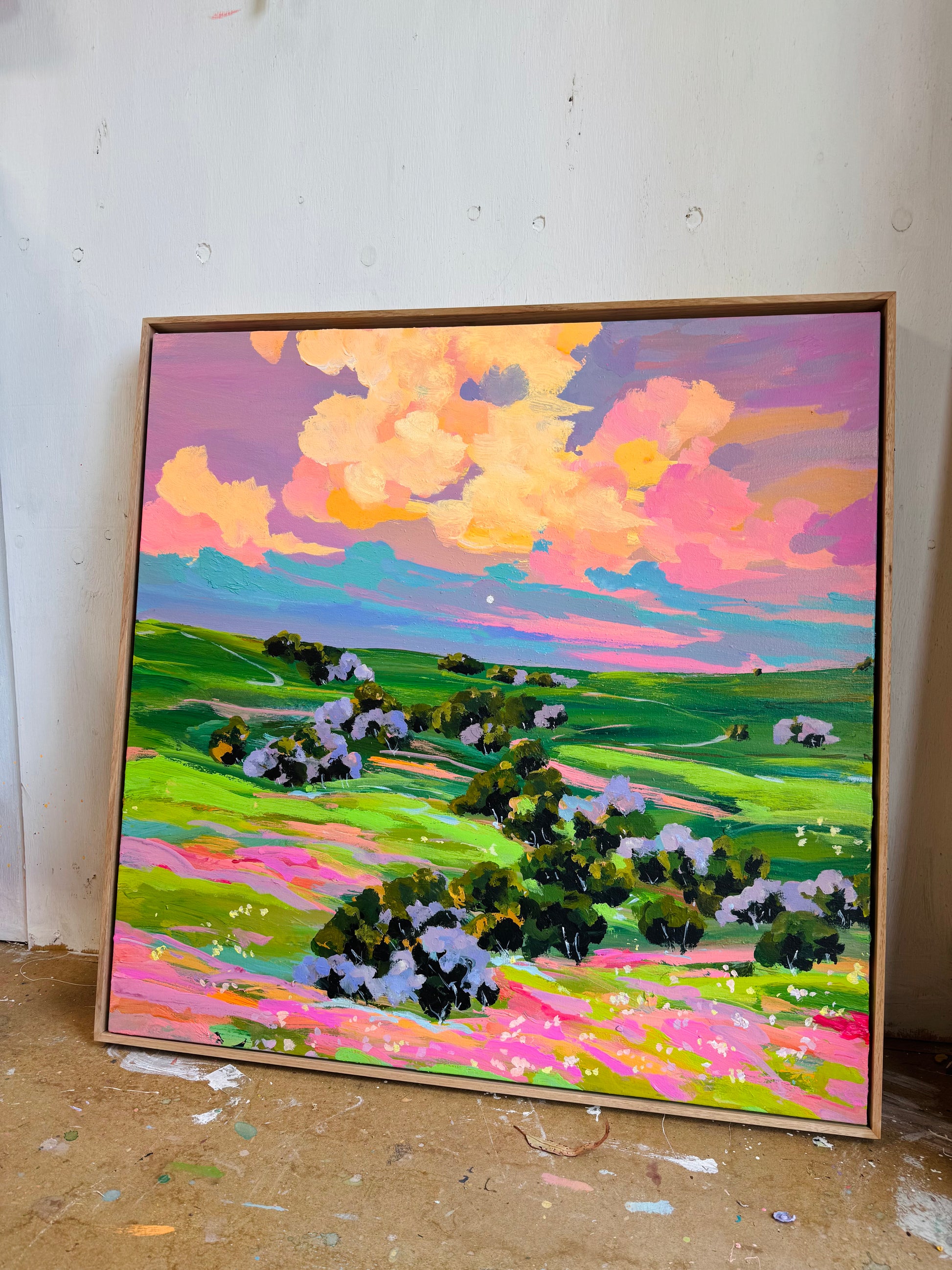 75cm x 75cm on oak frame