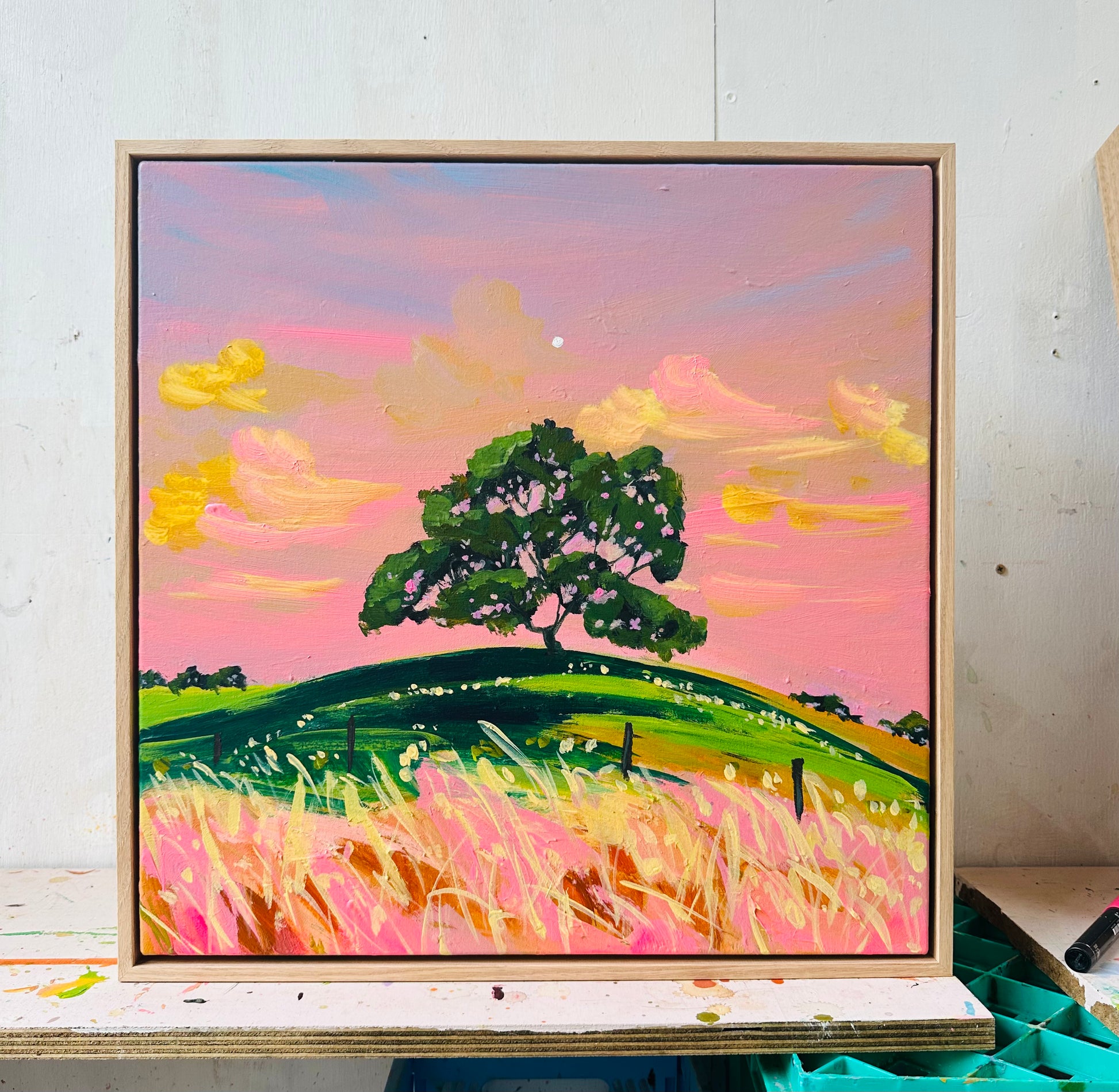 50cm x 50cm on oak frame